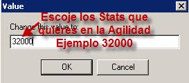 Paso11.- Ahora en este Recuadro Editas tus Puntos de agilidad ... de 201 lo editas al que desees por ejemplo 32000 o lo que quieras . Algunas versiones aceptan hasta 65000 puntos , solo es cuestion de probar aca la Imagen y por ULTIMO click en ACEPTAR y Vuelves al mu y Veras tus puntos de agilidad editados ....